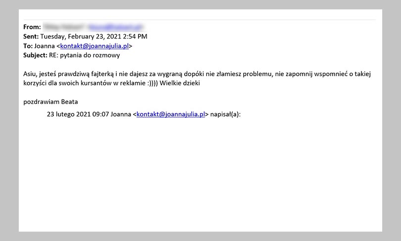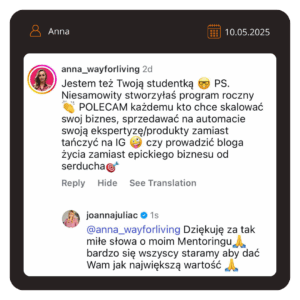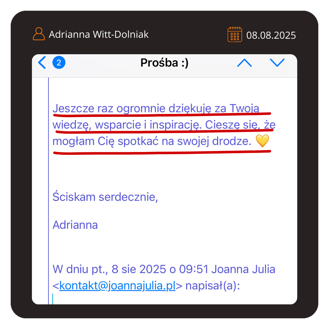 OPINIE KLIENTÓW MENTORINGU Edyta Sikorska Joanna Julia Mentoring Róża Bielecka Joanna Julia Mentoring Ashaki Joanna Julia Mentoring Nela Kłos Joanna Julia Mentoring Alicja Dubiel – Schramm Joanna Julia Mentoring Ewelina Żymańczyk Joanna Julia Mentoring Małgorzata Parduła Joanna Julia Mentoring Raluka Maks Joanna Julia Mentoring Agnieszka Grzechowiak Joanna Julia Mentoring Emilia Korpała Joanna Julia Mentoring Mateusz Wendland Joanna Julia Mentoring Anna Denesz Joanna Julia Mentoring Karolina Studenicka Joanna Julia Mentoring Jola Hejmo Joanna Julia Mentoring Ewelina Żymańczyk Joanna Julia Mentoring Piotr Boratyń Joanna Julia Mentoring Monika Ziarko Joanna Julia Mentoring UMÓW SIĘ NA ROZMOWĘ Z NASZYM ZESPOŁEM OPINIE OSÓB, KTÓRE PRACOWAŁY ZE MNĄNA PRZESTRZENI LAT Agnieszka Kamińska – Pluta KURS AGENCJA SM W 30 DNI Natalia Żukowicz KURS REKLAMA FACEBOOK ADS Anna Nagawiecka KURS AGENCJA SM W 30 DNI Olha Chekhova KURS ONLINE W 72 GODZINY Justyna Kołodziejczak SZABLONY CHAT GPT Natalia Puszczewicz SZABLONY CHAT GPT Krzysztof Skrobot SZABLOTY CHAT GPT Maciej Sołkiewicz KURS AGENCJE SM W 30 DNI Patrycja Łaskawiec KURS REKLAMA FACEBOOK ADS Szymon Winiarski KURS AGENCJA SM W 30 DNI Mikołaj Smajdor KURS REKLAMA FACEBOOK ADS Stuart Dibley KLIENT UMÓW SIĘ NA ROZMOWĘ Z NASZYM ZESPOŁEM OPINIE UCZESTNIKÓW MASTERMINDU W KRAKOWIE Monika Ziarko Joanna Julia Mastermind Ewa Rżysko Joanna Julia Mastermind Monika Rafałowska Joanna Julia Mastermind Mateusz Wendland Joanna Julia Mastermind Anna Donesz Joanna Julia Mastermind Ewelina Żymańczyk Joanna Julia Mastermind UMÓW SIĘ NA ROZMOWĘ Z NASZYM ZESPOŁEM OPONIE OSÓB, KTÓRE PRACUJĄ W ZESPOLE JOANNA JULIA Mikołaj Zespół Joanna Julia Marta Zespół Joanna Julia Monika Zespół Joanna Julia UMÓW SIĘ NA ROZMOWĘ Z NASZYM ZESPOŁEM JOANNA JULIA: OPINIE NA PIŚMIE Joanna Julia Agata UMÓW SIĘ NA ROZMOWĘ Z NASZYM ZESPOŁEM Social Media Facebook Youtube Instagram Linkedin Copyright 2020 Joanna Julia